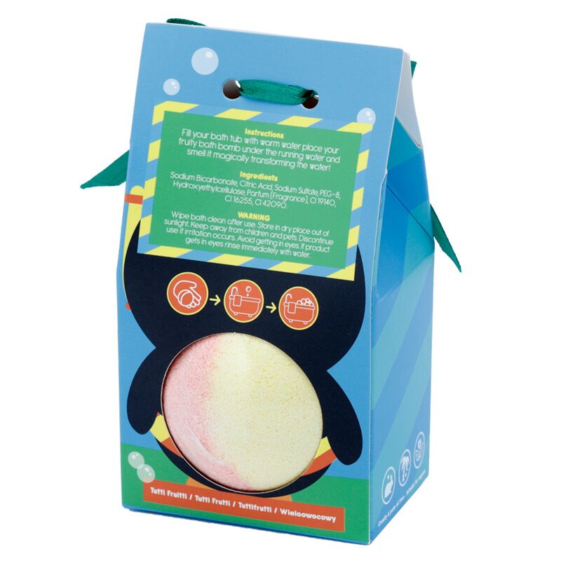 - Ingredientes do Tutti Frutti Pinguim: Bicarbonato de Sódio, Ácido Cítrico, Sodium Sulfate, Sodium Carbonate, Glycerin, PEG-400, Água (Aqua) and Fragrância (Perfume)