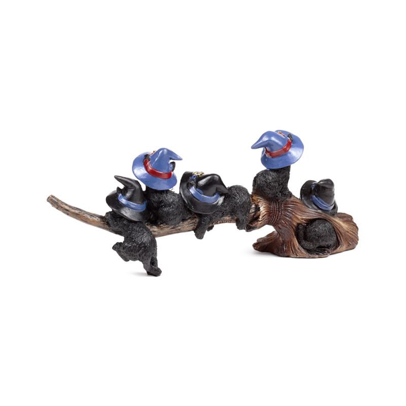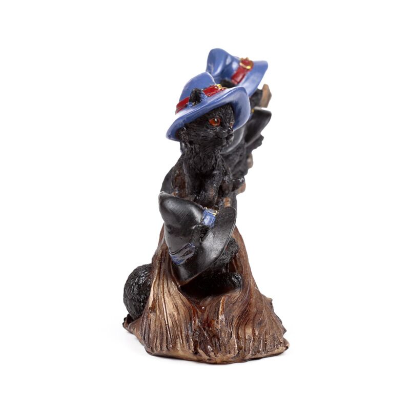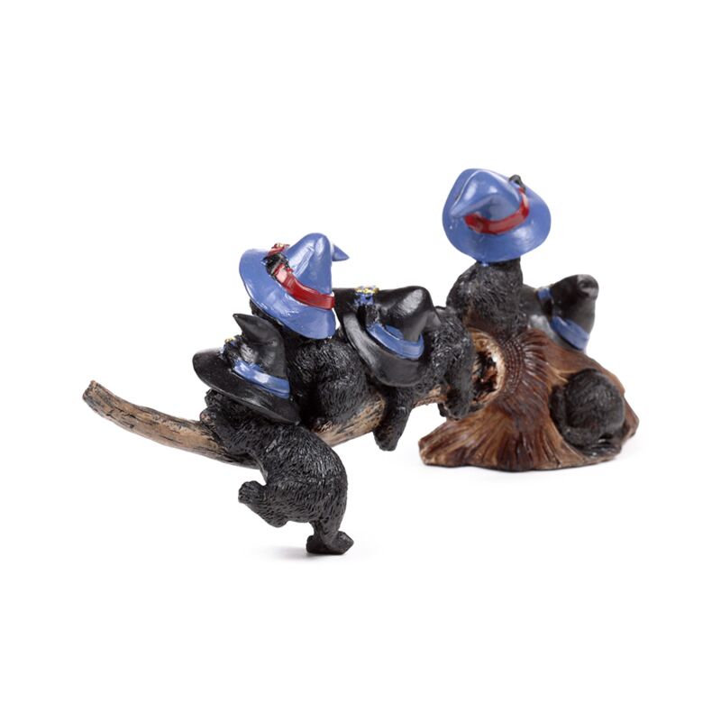 Gatos pretos bruxos a brincar com vassoura
