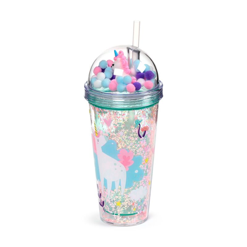 Unicórnio Mágico - Copo e palhinha com parede dupla e encantos