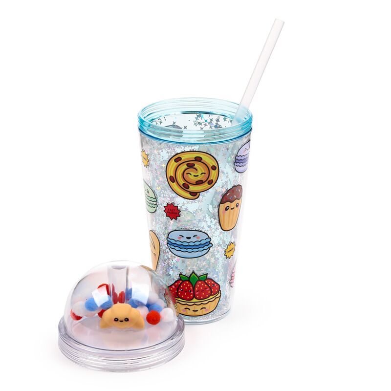 Copo e palhinha com parede dupla e encantos - Foodiemals Boulangerie