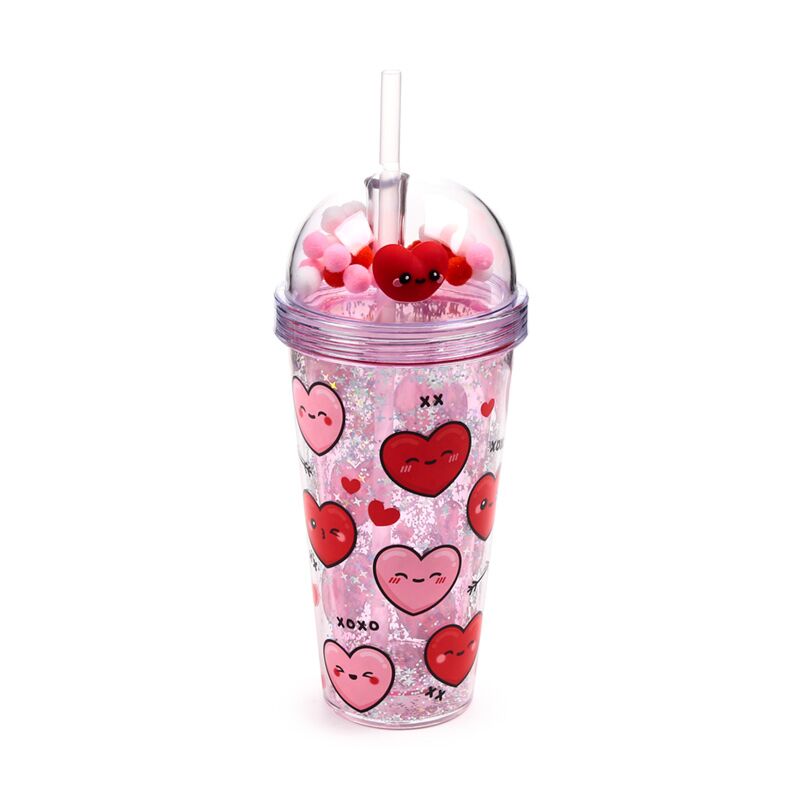 Copo e palhinha com parede dupla e encantos J´adoramals Hearts Coração
