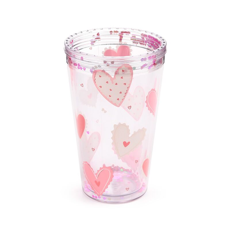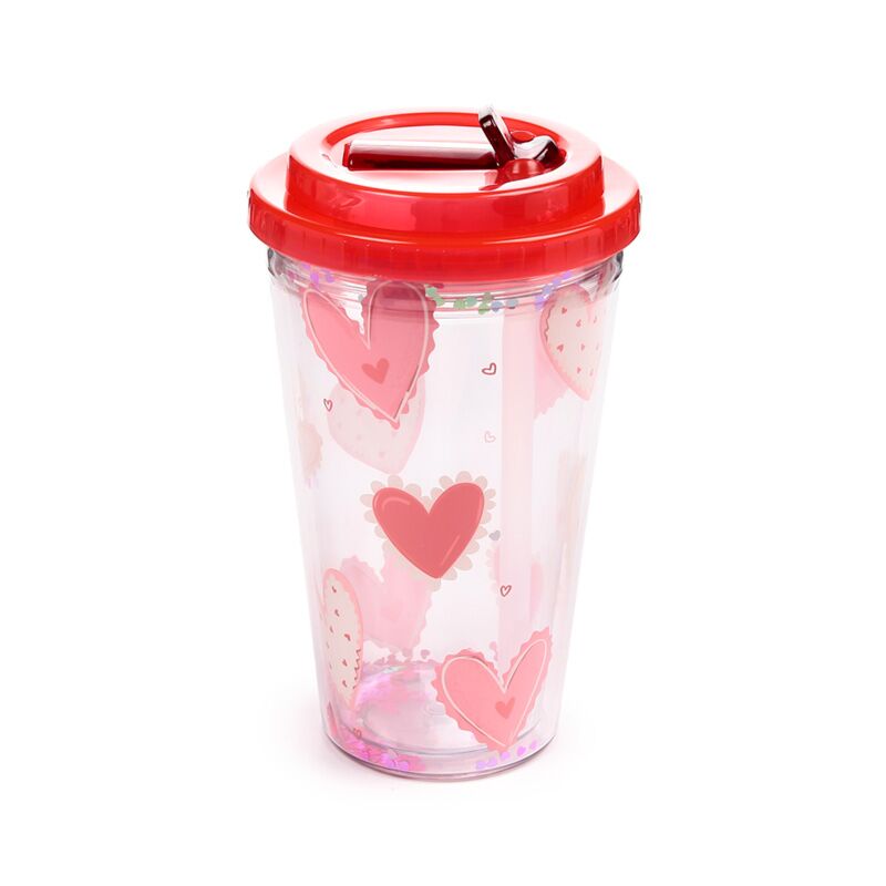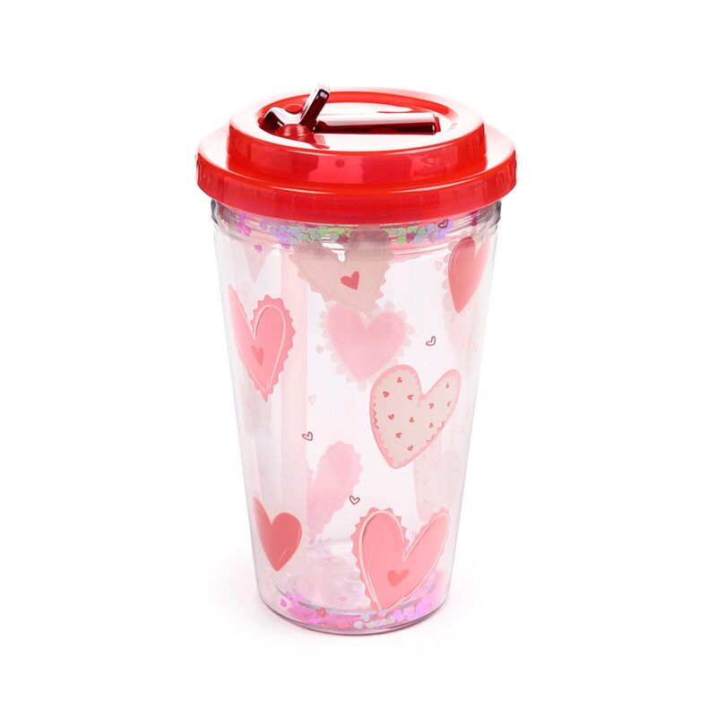 Copo em Plástico com parede Dupla com Tampa e Palhinha - Amore Hearts Coração