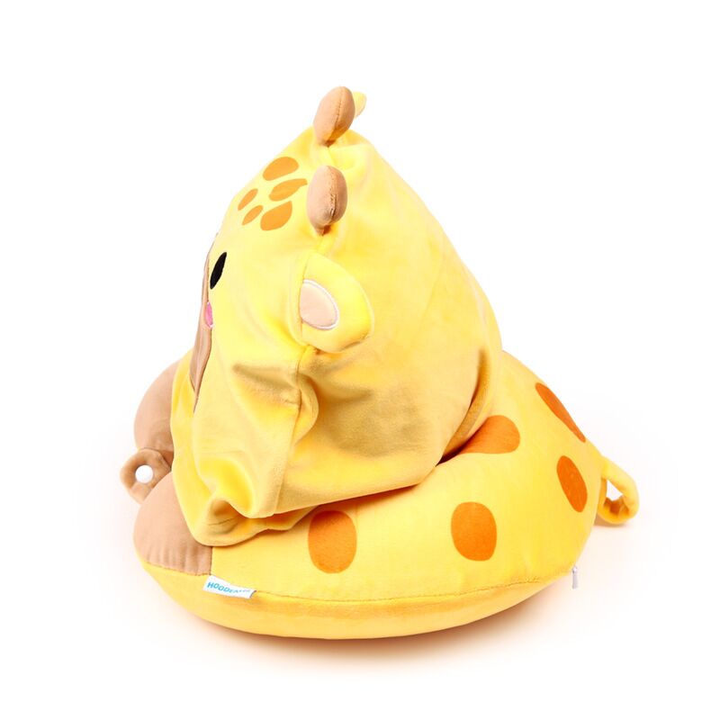 Almofada de viagem memory foam com capuz Hoodeazzz Raffi a Girafa