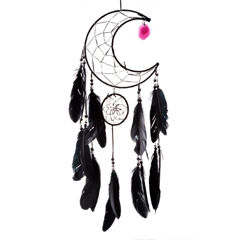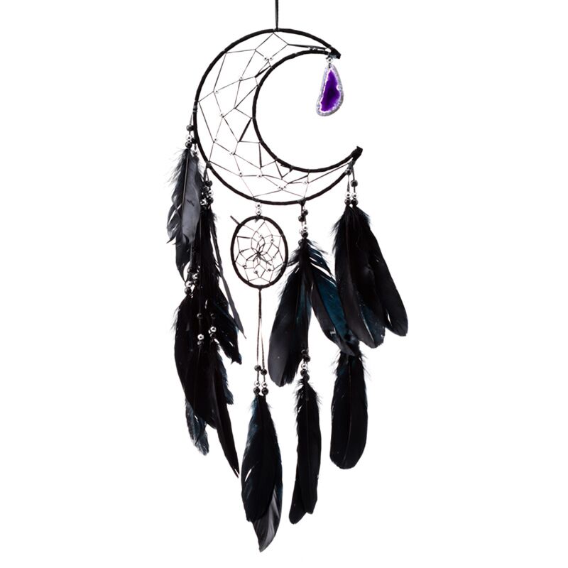 Caça Sonhos de Lua crescente Preta com Encanto de Ágata
