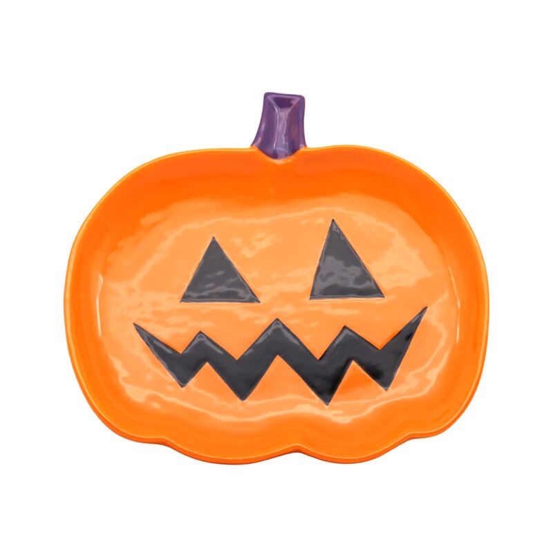 Prato de cerâmica com abóbora assustadora