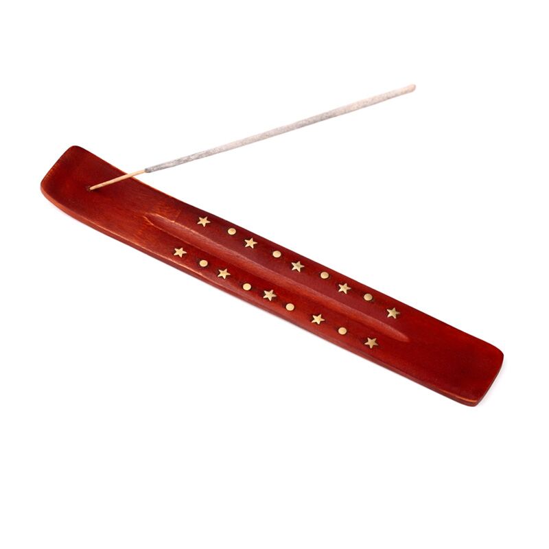 Queimador de incenso em madeira de Mango estrelas em latão