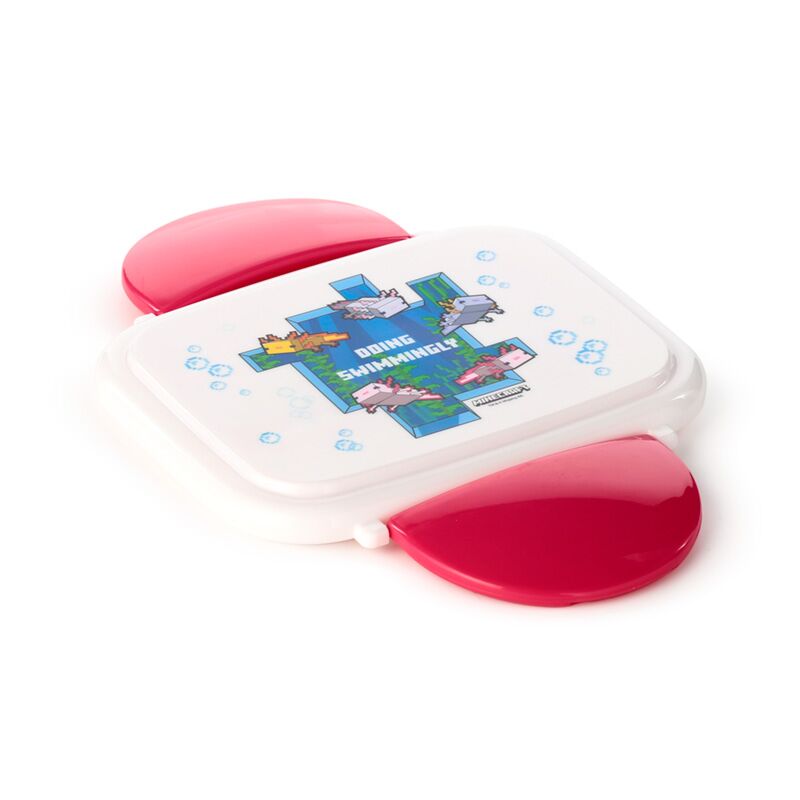 Lancheira Bento com fecho clip e talheres - Minecraft Axolote