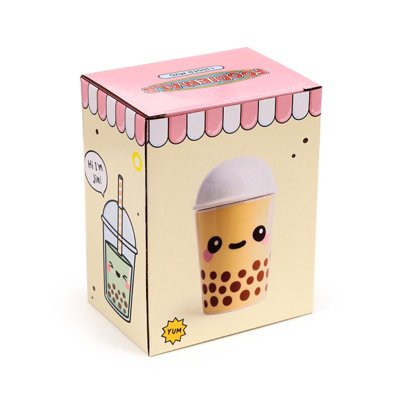 Caneca de cerâmica com tampa Boba Chá de bolhas