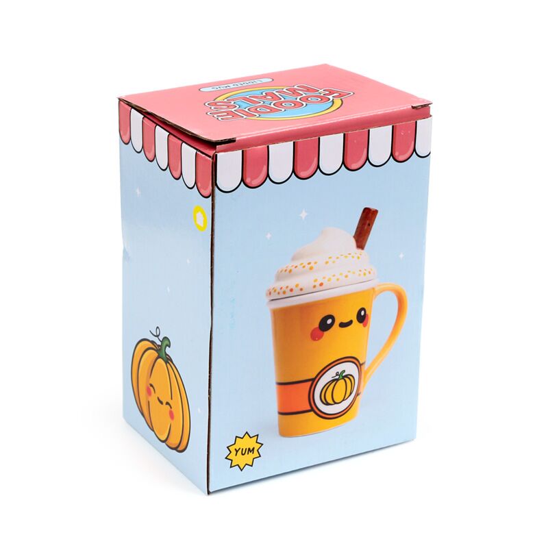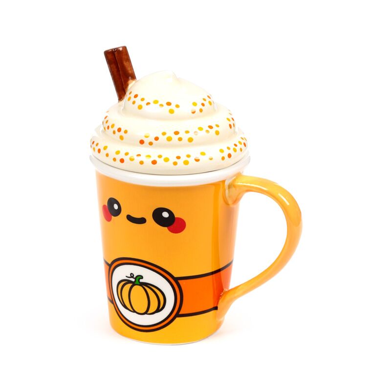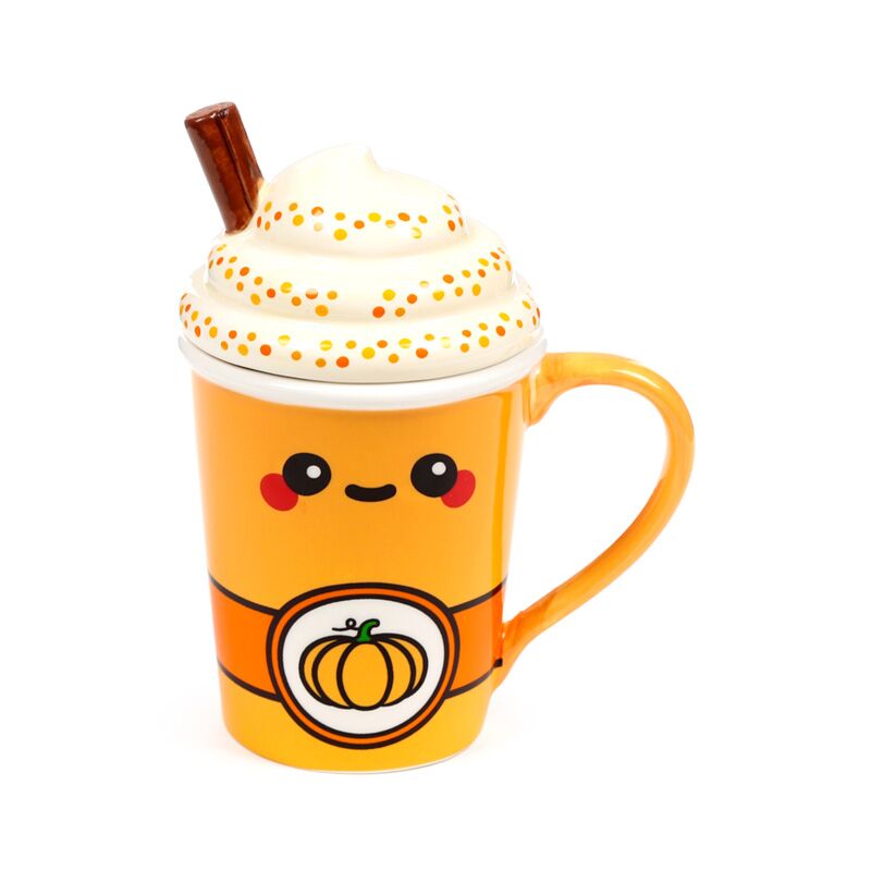 Caneca de cerâmica com tampa Foodiemals Latte com especiarias de abóbora