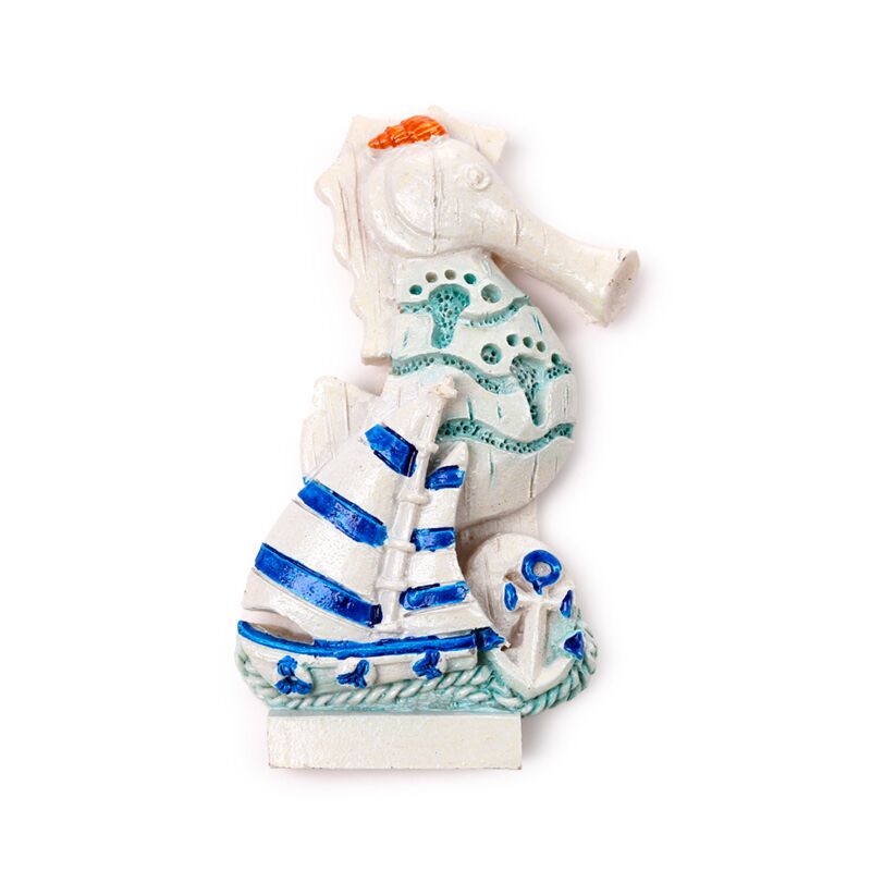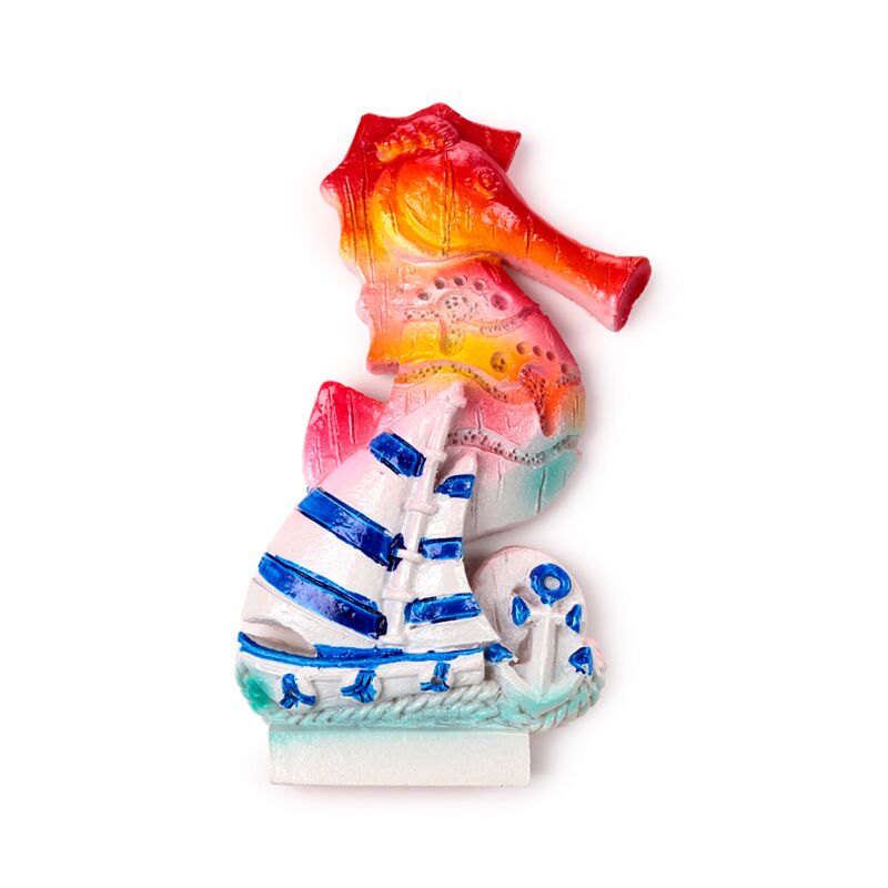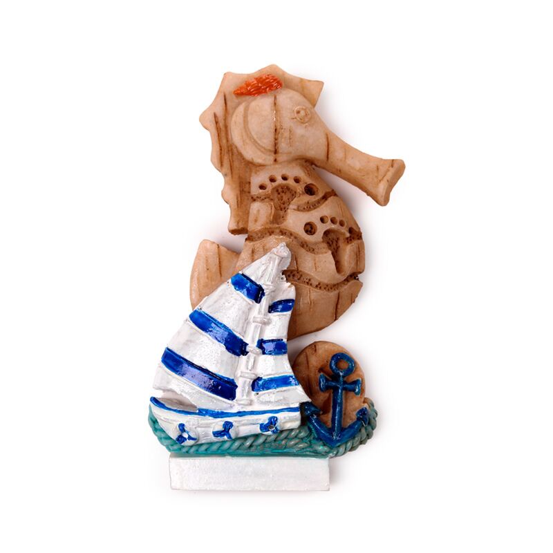 Íman souvenir beira-mar Cavalo marinho com barcos à vela e âncoras