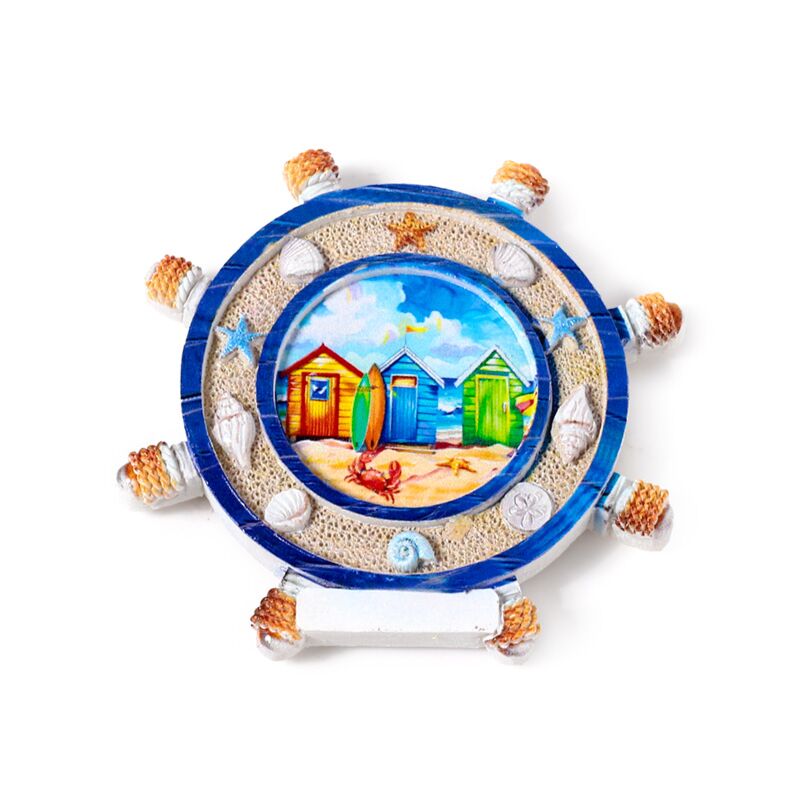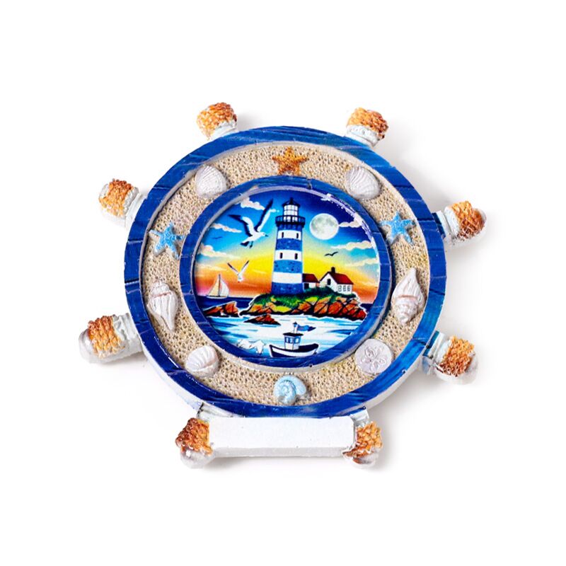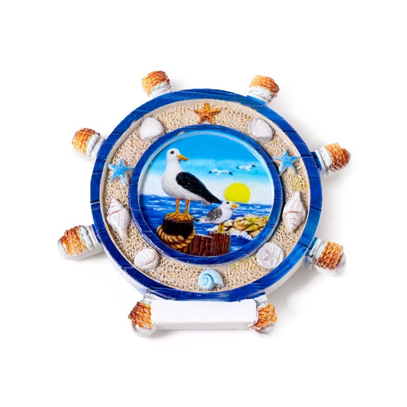 Íman souvenir beira-mar Roda de navio com cenas à beira-mar