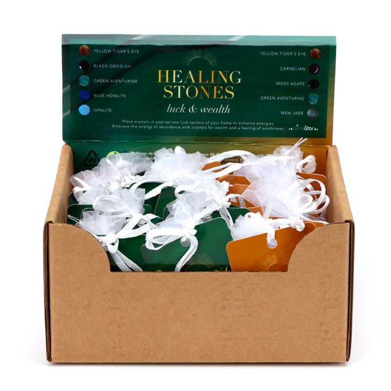 - Pedras: Sorte ( Olho de Tigre Amarelo, Obsidiana Negra, Aventurina Verde, Pedra Howlita Azul, Opalito) - Riqueza (Olho de Tigre Amarelo, Carneliano, Ágata Musgo, Aventurina Verde, Nova Jade)