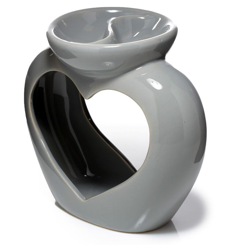 Queimador de Óleos em Cerâmica - Forma de Coração Cinzento