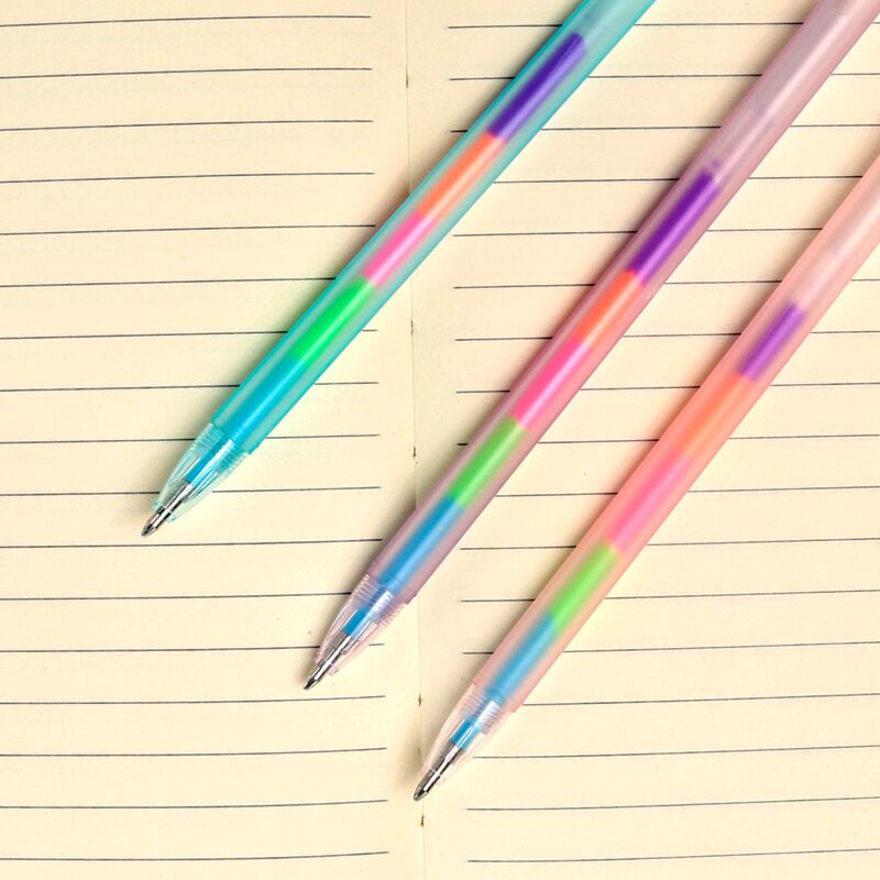 - Cor da tinta: Cada caneta tem 5 cores de tinta: azul, verde, rosa, laranja e roxo. Quando a primeira cor se esgota, começa a cor seguinte.