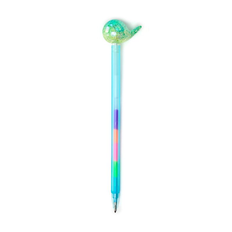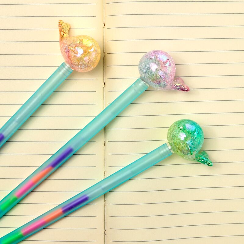 - Cor da tinta: Cada caneta tem 5 cores de tinta: azul, verde, rosa, laranja e roxo. Quando a primeira cor se esgota, começa a cor seguinte.