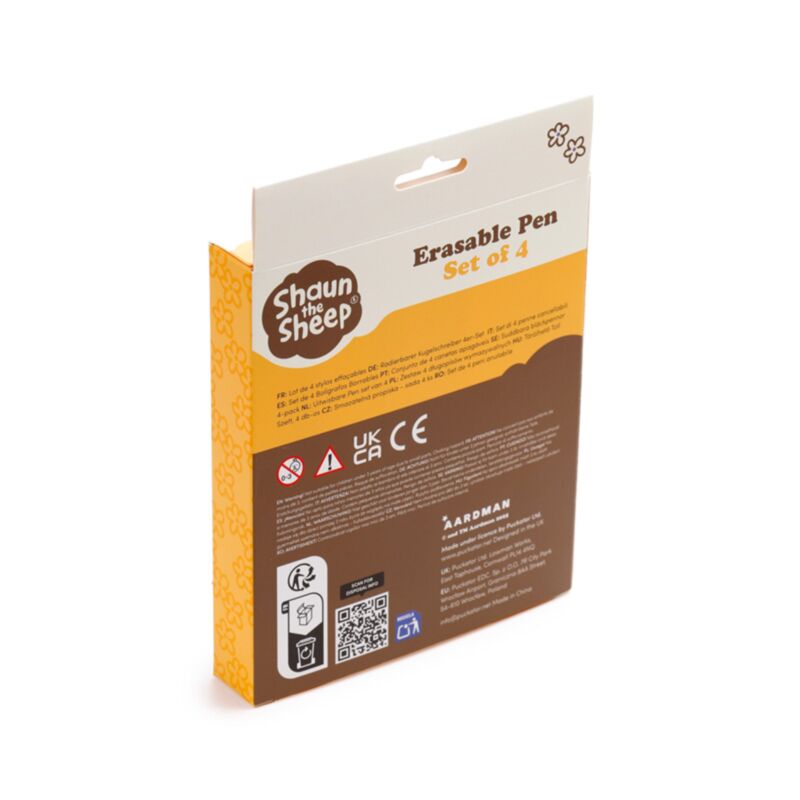 https://www.puckator.pt/pen270-caneta-apagavel-set-de-4-com-topo-de-silicone-kawaii-shaun-a-ovelha.htmlPEN270Caneta apagável Set de 4 com topo de silicone Kawaii Shaun a ovelha<p>Caneta apagável Set de 4 com topo de silicone Kawaii Shaun a ovelha</p><ul><li><strong>Material:</strong> Plástico (ABS/TPR) e PVC, Silicone e aço inoxidável</li><li><strong>Cor da tinta:</strong> azul</li><li><strong>Marcado CE:</strong> Sim</li><li><strong>EN71:</strong> Sim</li><li><strong>Não adequado para:</strong> 0 - 3 Anos</li><li><strong>Informação do Produto:</strong> Apague o que escreveu utilizando o topo que se encontra na parte superior da caneta.</li><li><strong>Informações sobre a licença:</strong> Este produto está totalmente licenciado e pode ser vendido em todo o mundo.</ul><p><strong>Ampliar informação:</strong></p><ul><li><strong>Quer saber mais acerca de comprar na Puckator? </strong>leia a nossa<a href="/advice-centre" target="_blank" title="Puckator PT Guia de informação para o cliente"> Guia de informação para o cliente.</a></li></ul></ul><p><img src="{{media url="wysiwyg/Symbols/ERASABLE.jpg";}}" alt="Erasable Packaging Symbol|Puckator" width="100" height="100"></p>https://www.puckator.pt/media/catalog/product/P/E/PEN270_001_1774963408.jpg2.7instock2.72.700Puckator000https://www.puckator.pt/media/catalog/product/P/E/PEN270_001_1774963408.jpg175511915819193194581945919460195541957919580/Canetas originais/Presentes De Animais Da Quinta/Aardman, Wallace & Gromit/Novidades/De Volta em Stock2025-10-27T09:54:27+0000