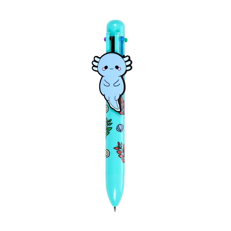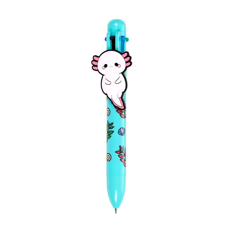 Caneta Multi Cor (6 Cores) com encantos Adoramals Maddie o Axolote