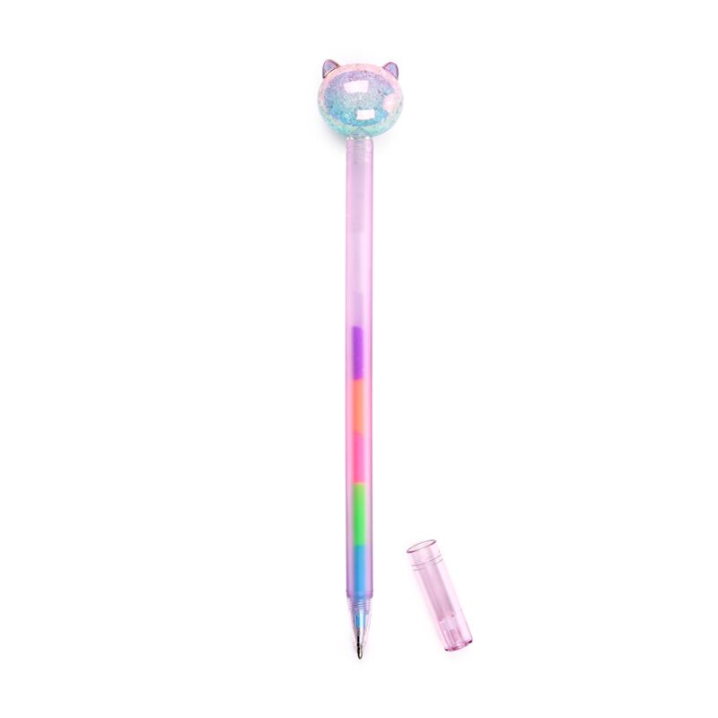 Caneta com tinta arco-íris gato