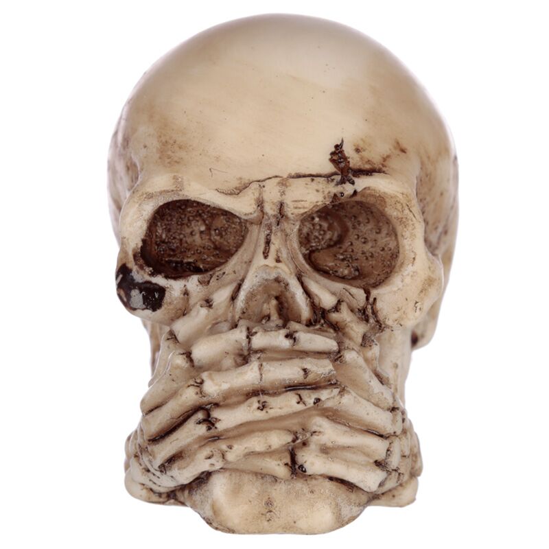 Conjunto 3 mini caveiras: não ver, falar e ouvir o mal