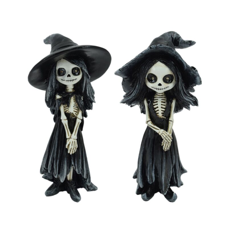 Menina Esqueleto em pé com Chapéu de Bruxa