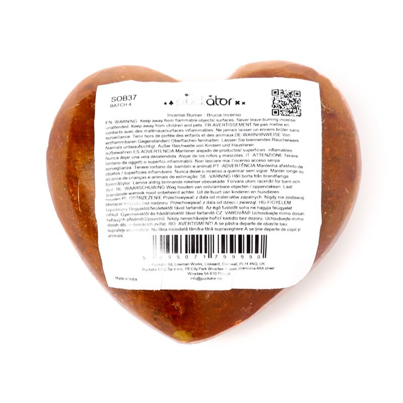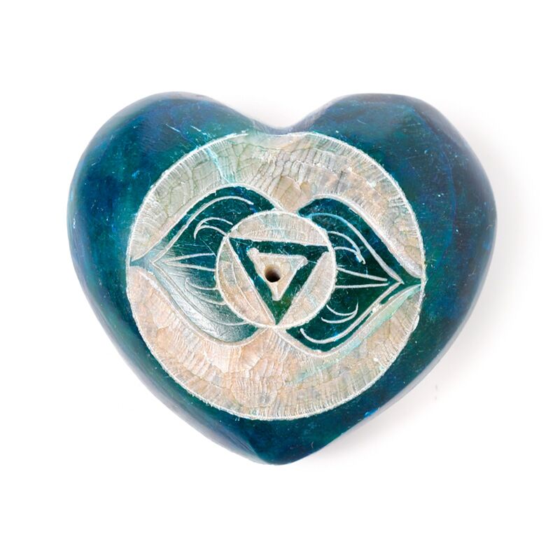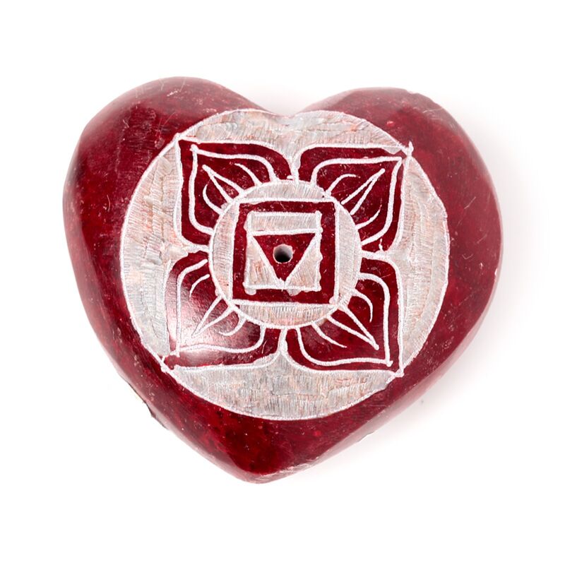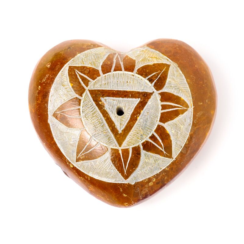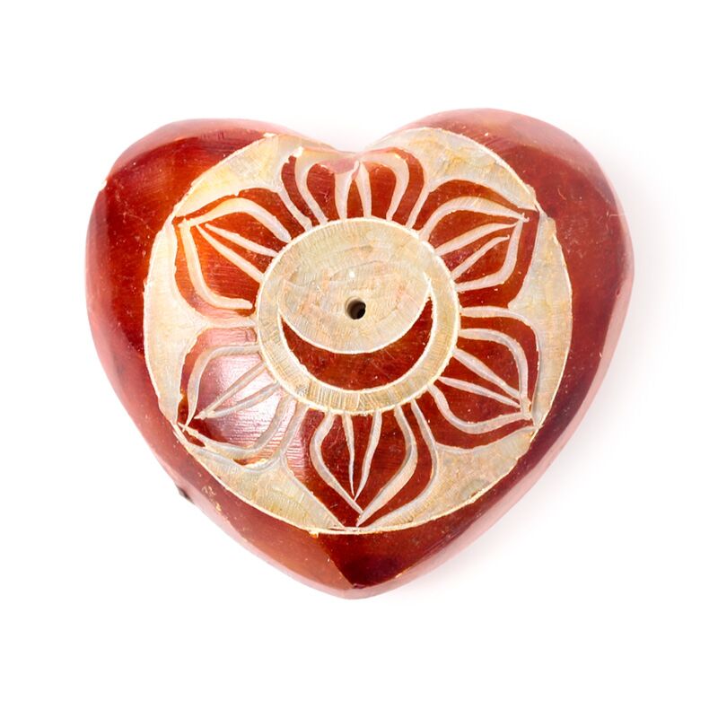 Queimador de incenso pedra-sabão forma coração imagens esculpidas