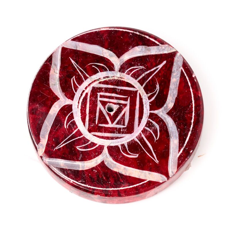 Queimador de incenso pedra-sabão forma circular com imagens esculpidas