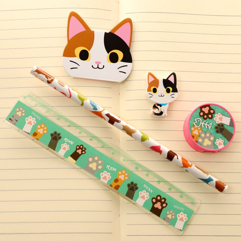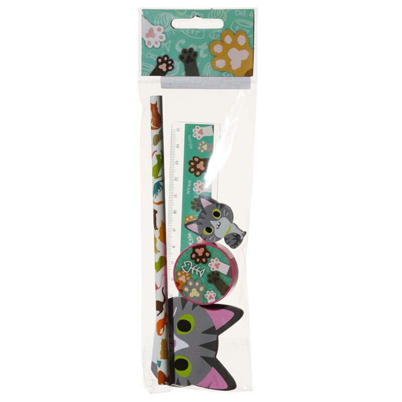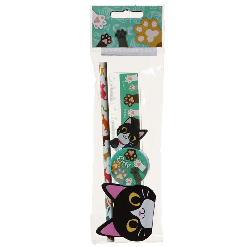 Conjunto papelaria gato de 5 peças