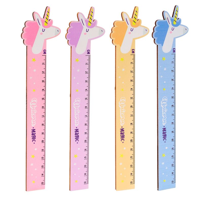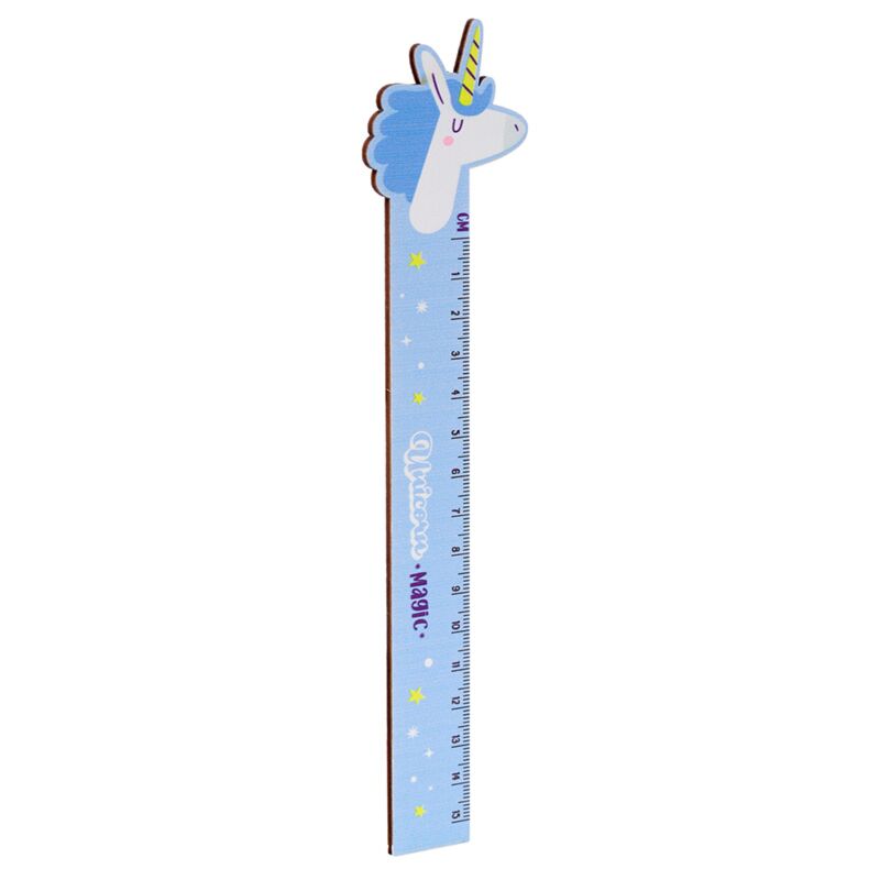 Régua de madeira moldada forma Unicórnio Mágico (15cm)
