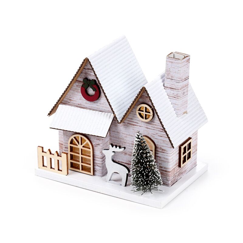 Decoração LED de casa de Natal com dupla fachada em bétula prateada