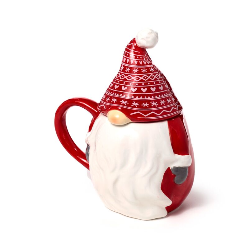 Caneca de cerâmica com tampa - Gnomo de Natal escandinavo